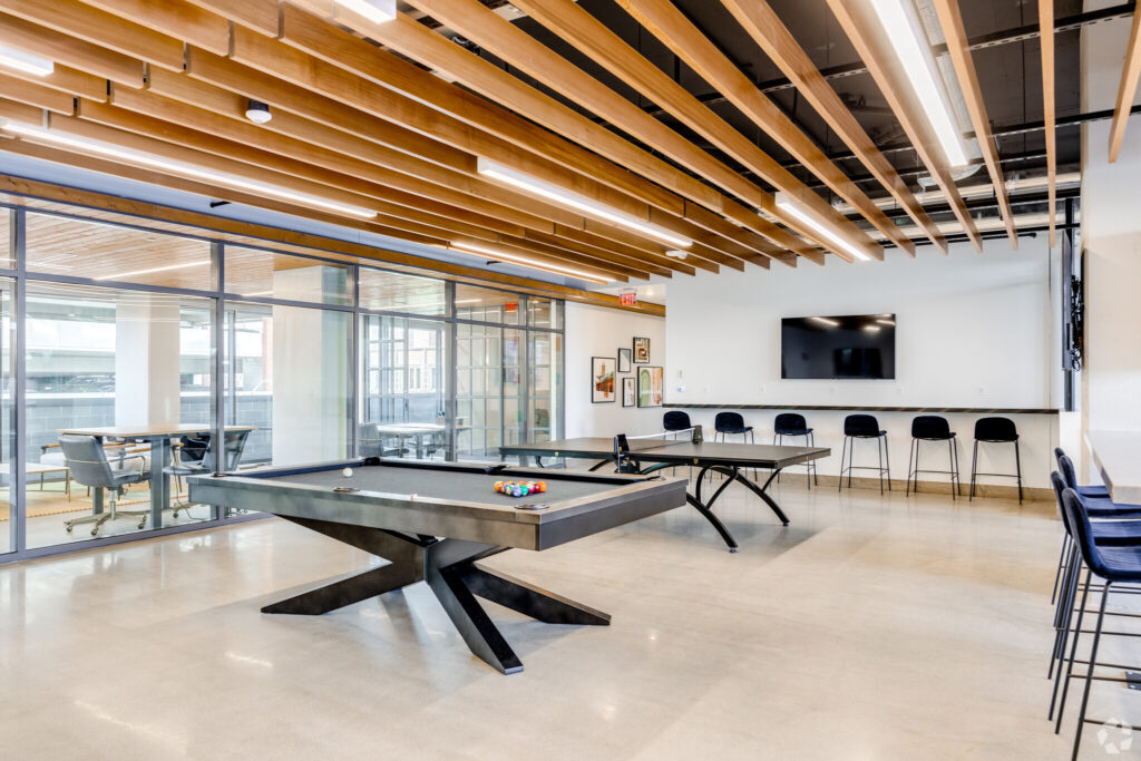 The 400 West Fayette project featured the installation of a modern rainscreen cladding system across multiple elevations, providing both durability and visual impact. Custom wood soffit detailing was integrated throughout the design, adding warmth and a natural contrast to the building’s exterior. Throughout the process, A+N Construction coordinated closely with Whiting-Turner to meet tight construction timelines. The result was a high-performance, low-maintenance façade that blends aesthetic appeal with long-term functionality.