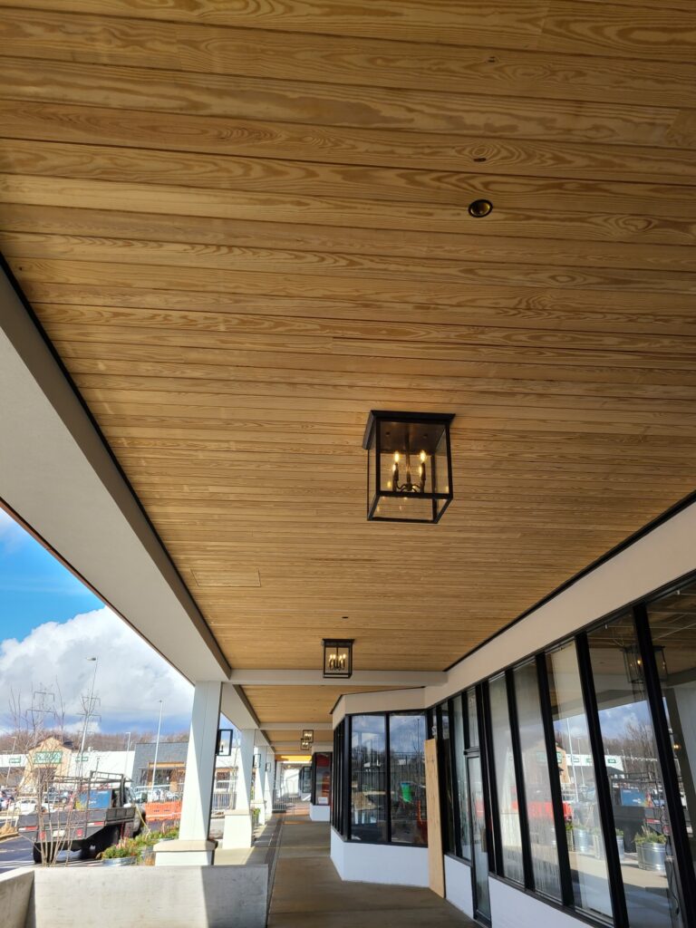 For Burtonsville Crossing, A+N Construction provided a combination of site carpentry and amenity installations, including custom wood soffits that bring warmth and architectural character to the retail environment. The work focused on precision and durability, ensuring the finished details would withstand daily use while complementing the overall design vision. Through skilled craftsmanship and close coordination with the project team, A+N Construction delivered a functional, visually appealing upgrade that enhances the retail center’s atmosphere and visitor experience.